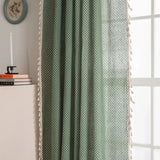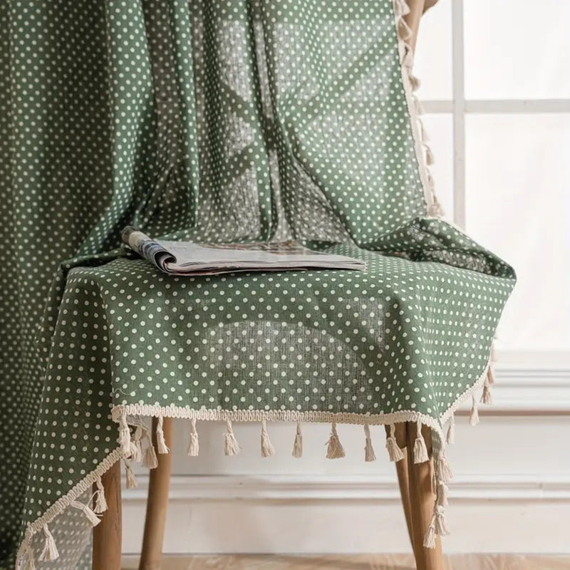 The Everfern Dappled Polka Dot Tassel Curtain is the perfect blend of vintage charm and cozy style. Its soft green hue, whimsical polka dots, and beige tassel trim add a warm, inviting touch to any window. Whether it’s your kitchen, bedroom, or living room—this curtain brings personality and soft-filtered light to your home.